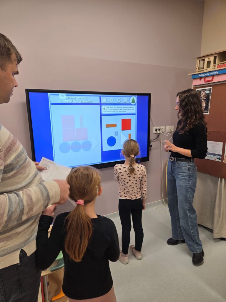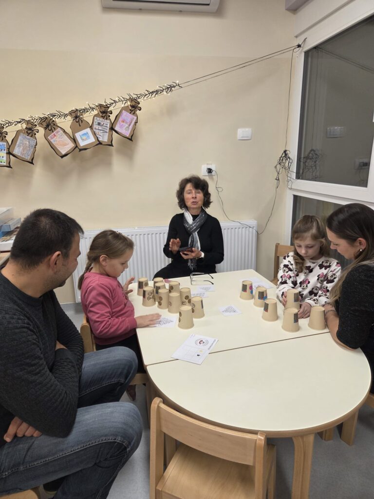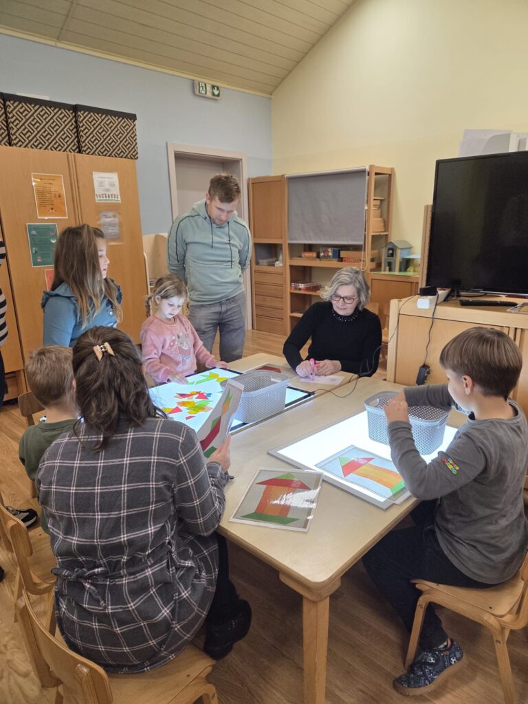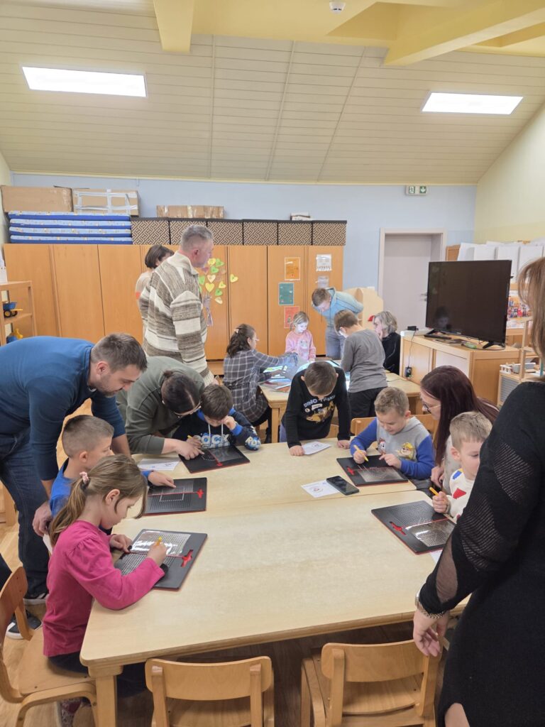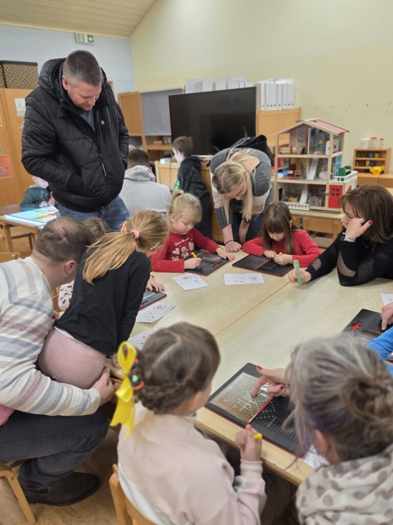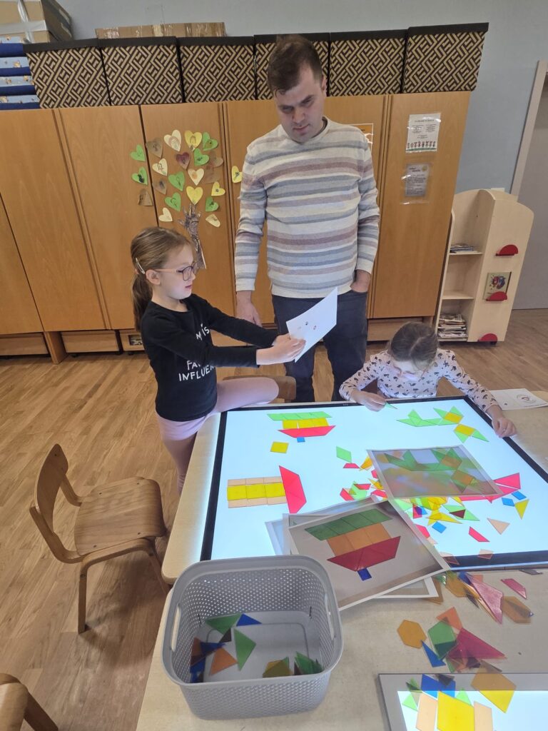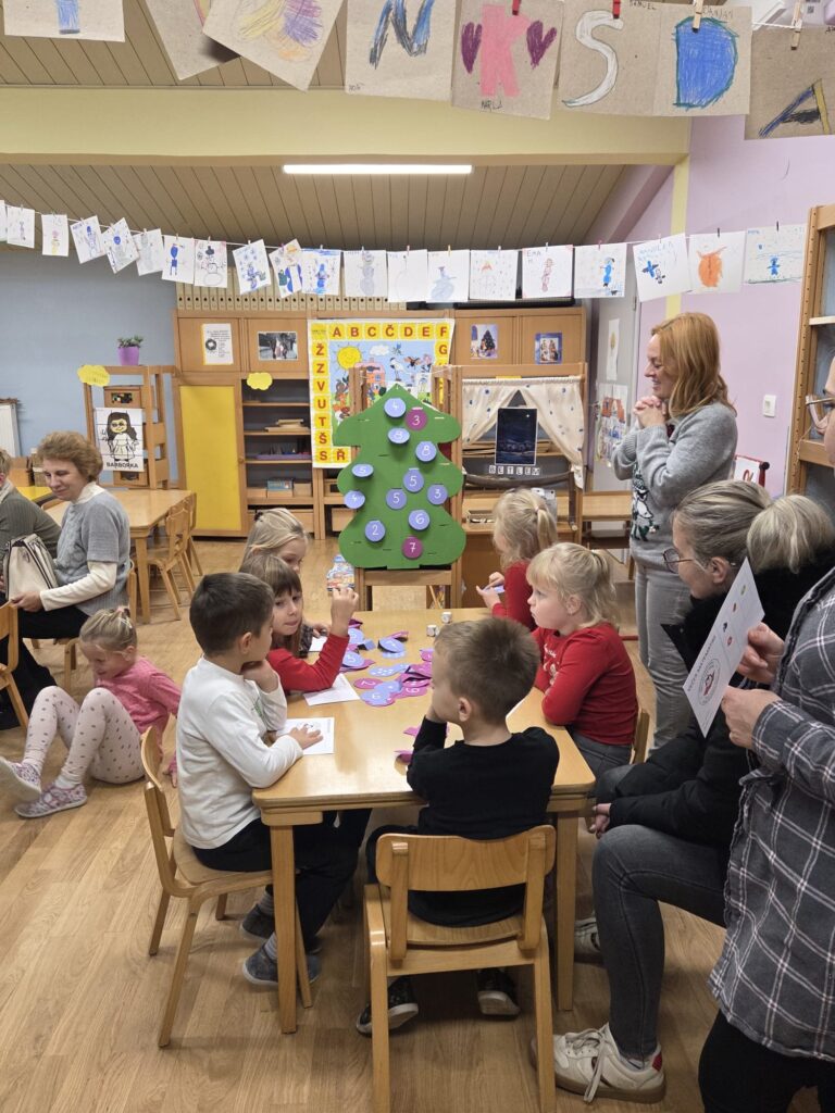 Děti starší skupiny dnes se zůčastnily na “Večeru matematiky” ve školce se jednym rodičem. Děti měli připravéne matematické ůkoly ve třech skupin. Kazdý ůkol který uspěšně zvládly dostaly značku a uznáni.