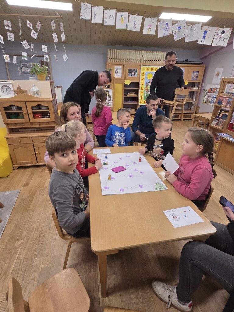 Danas su djeca starijih skupina sudjelovala u “Večeru matematike” sa jednim roditeljem. Matematički zadaci bili su u tri skupine. Za svaki riješeni zadatak djeca su dobila štambilj i priznanje.