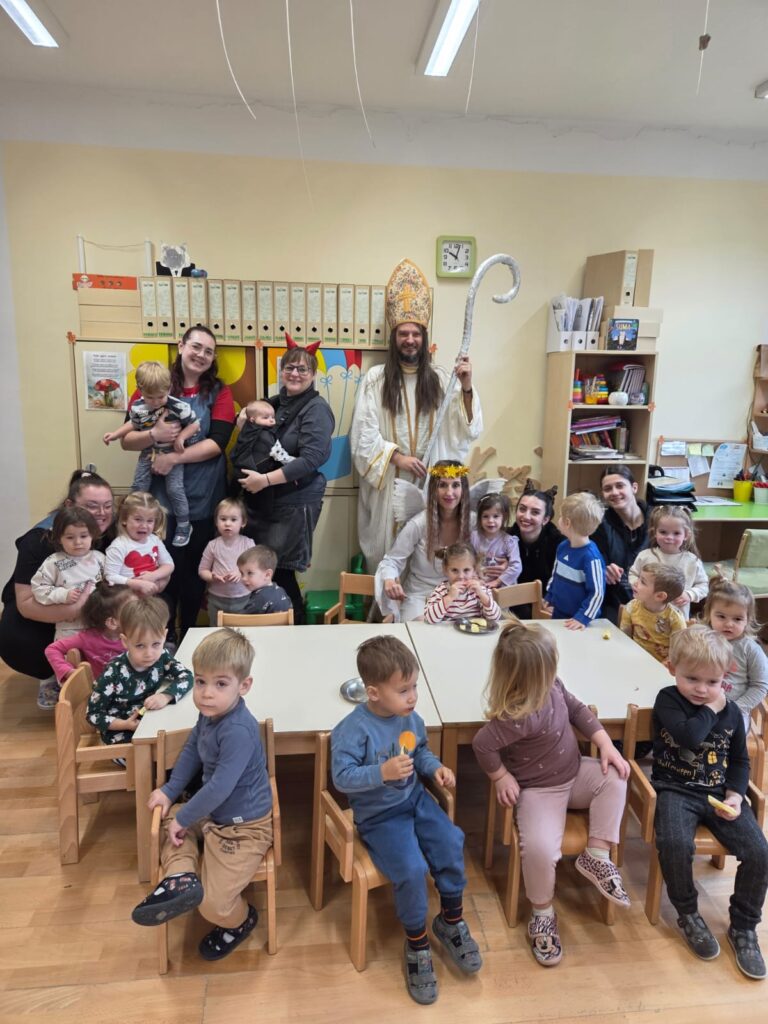 Svatý Mikuláš se čertíkem a andělem ve školce.