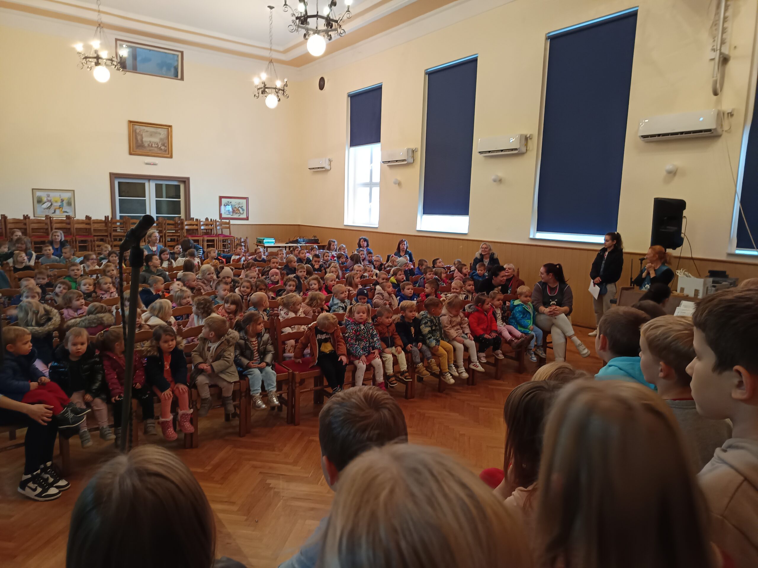 Dnes děti Pohádkové předškolní skupiny sehrály divadelko “O Smolíčkovi” pro děti ze školky. Po divadle děti z každé skupiny zpívali svou “skupinovou písen”.