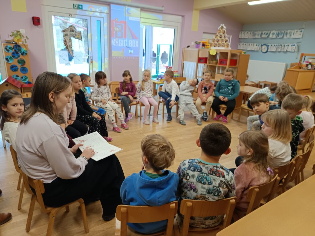 Knjižničarka Emilija iz Gradske knjižnice “češkog odjela” provela kampanju “15 po 15 – Rođeni za čitanje” u Pohadkovoj skupini. Čitala je bajku Václava Čtvrtka o Hajaji, priču Zuzane Pospíšilové O Hodném vodníku Františku te pjesmicu o Mrázu.