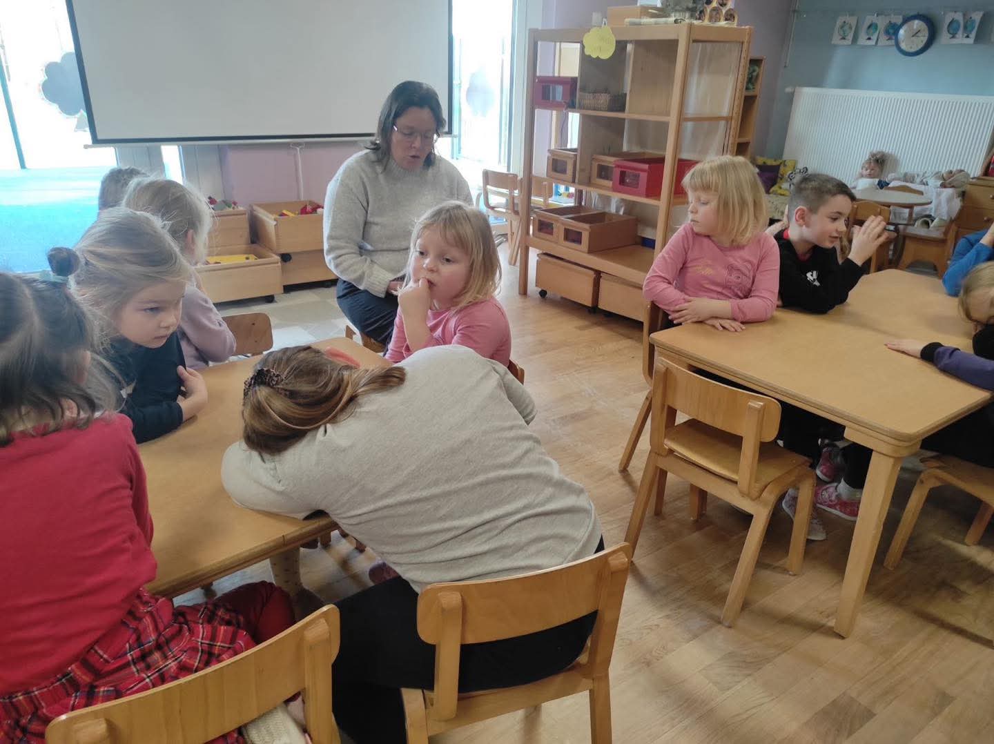 Děti starší skupiny dnes se zůčastnily na “Večeru matematiky” ve školce se jednym rodičem. Děti měli připravéne matematické ůkoly ve třech skupin. Kazdý ůkol který uspěšně zvládly dostaly značku a uznáni.
