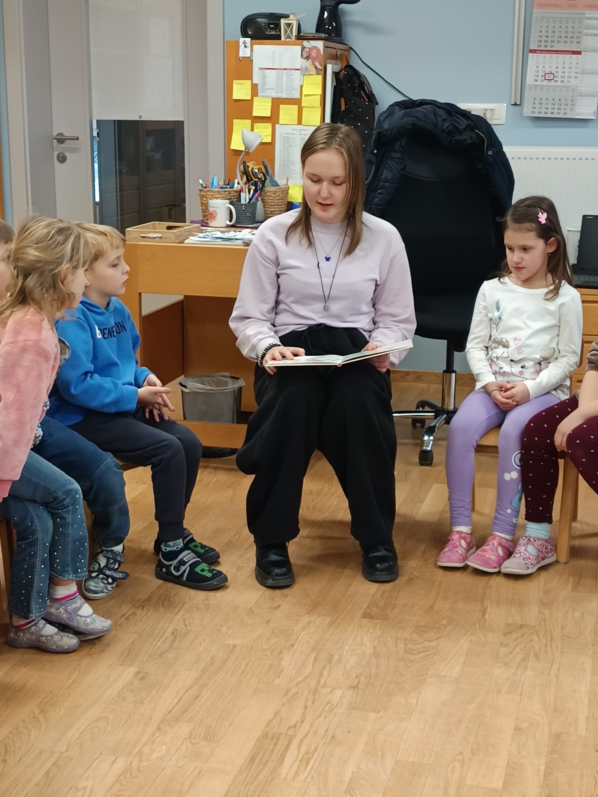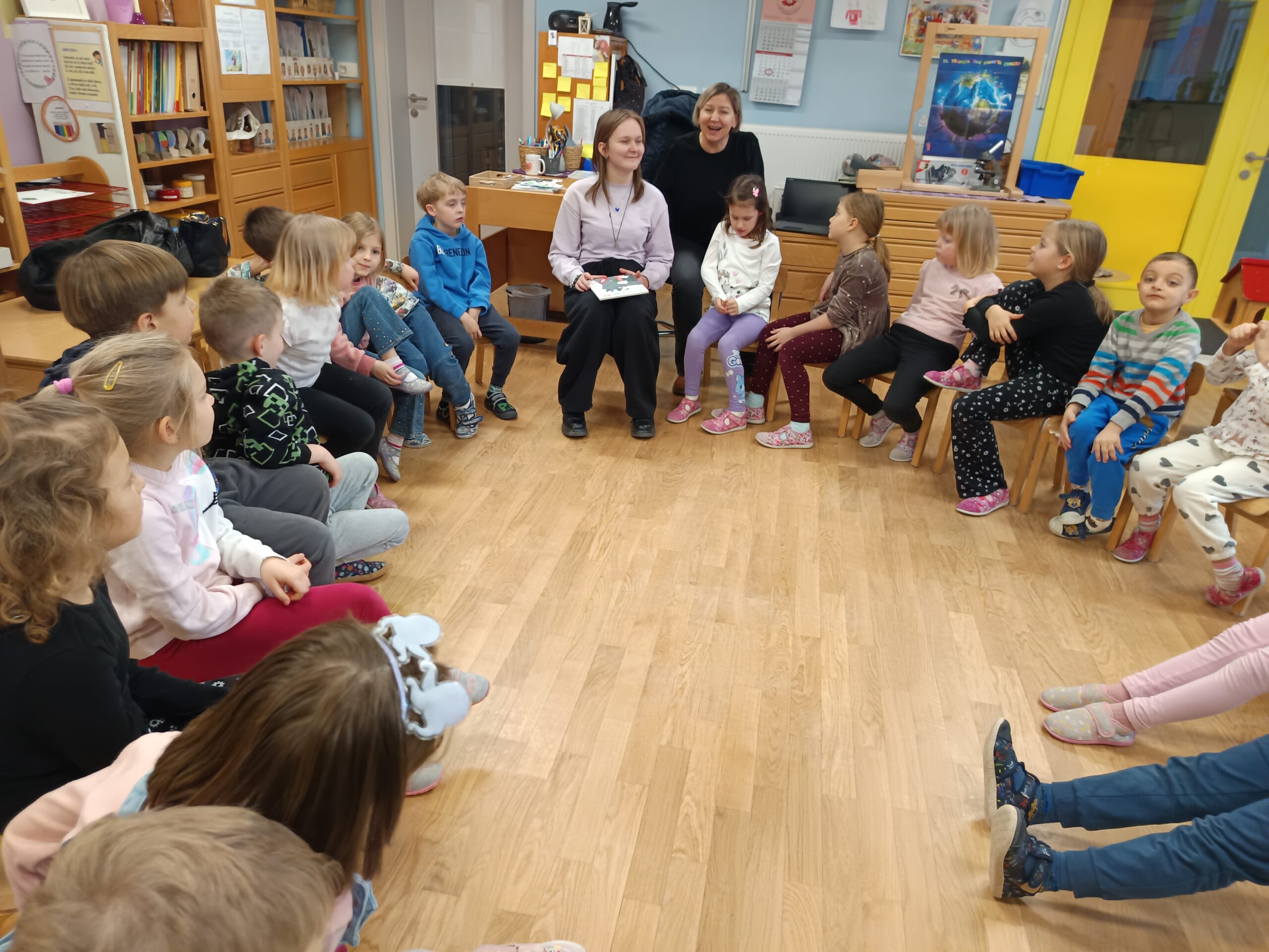 Knjižničarka Emilija iz Gradske knjižnice “češkog odjela” provela kampanju “15 po 15 – Rođeni za čitanje” u Pohadkovoj skupini. Čitala je bajku Václava Čtvrtka o Hajaji, priču Zuzane Pospíšilové O Hodném vodníku Františku te pjesmicu o Mrázu.